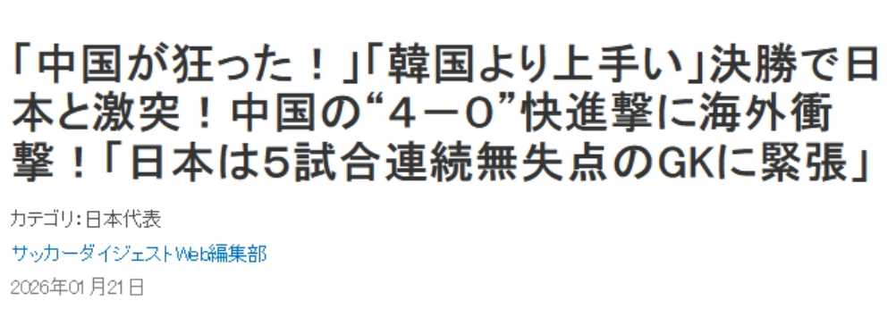 与此同时,中国队的出色发挥,也终于在亚洲足坛扬眉吐气了一次。包括日、韩媒体,都在用“四档奇迹”来形容中国队,尤其是日本媒体,由于他们决赛要与中国队争夺冠军,对我们的关注也格外的细致。
