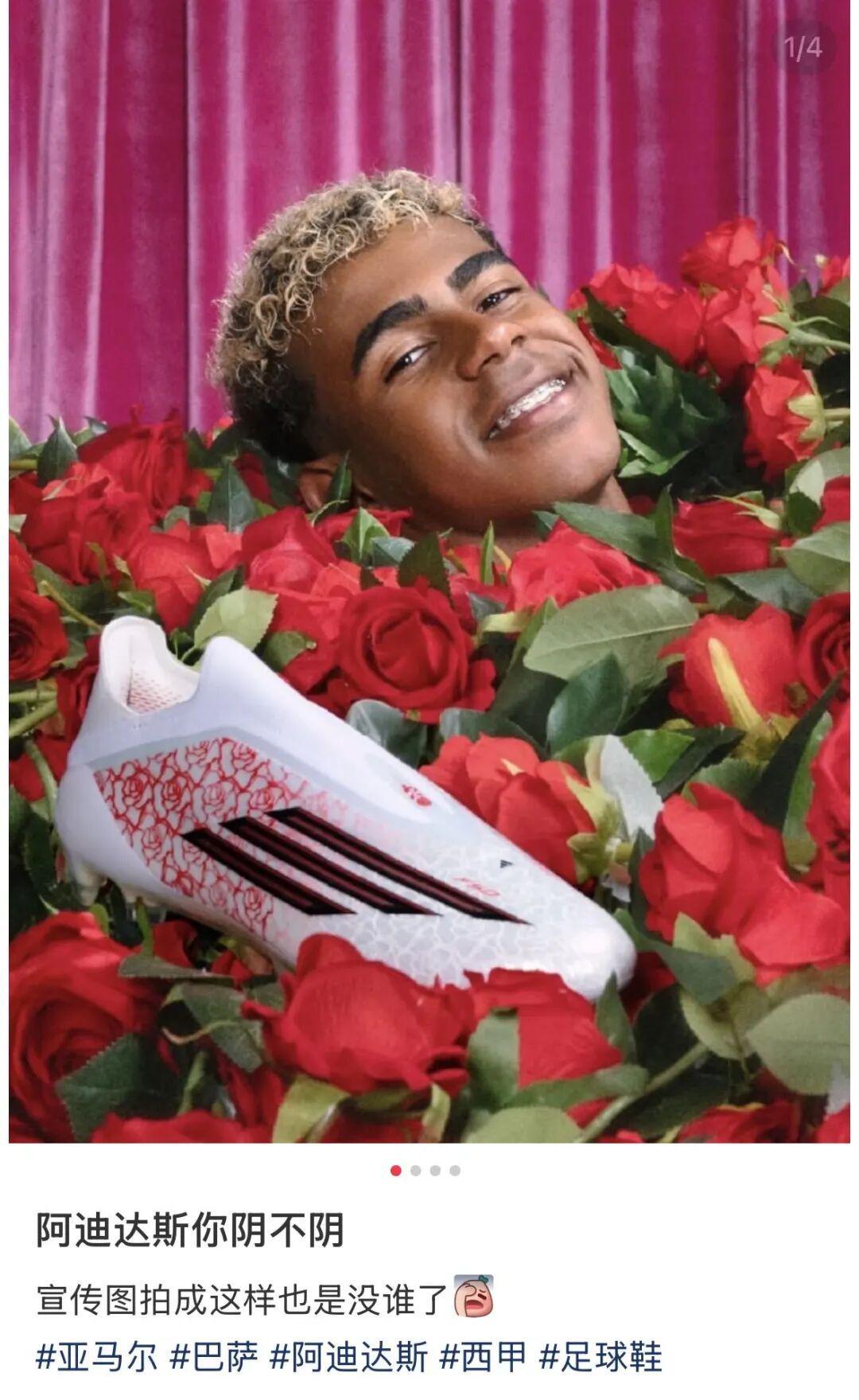 本来想借着玫瑰花的浪漫气息,给这位巴萨小将的新战靴造势,结果愣是让网友看出了满屏的阴间风”。